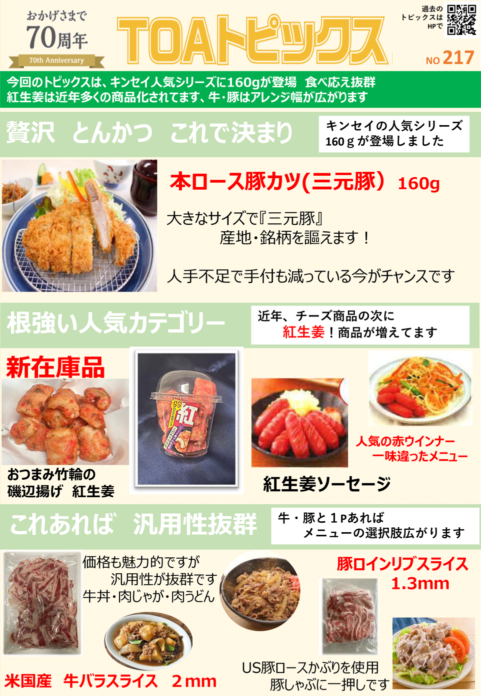 紅生姜は近年多くの商品化されてます、牛・豚はアレンジ幅が広がります。
