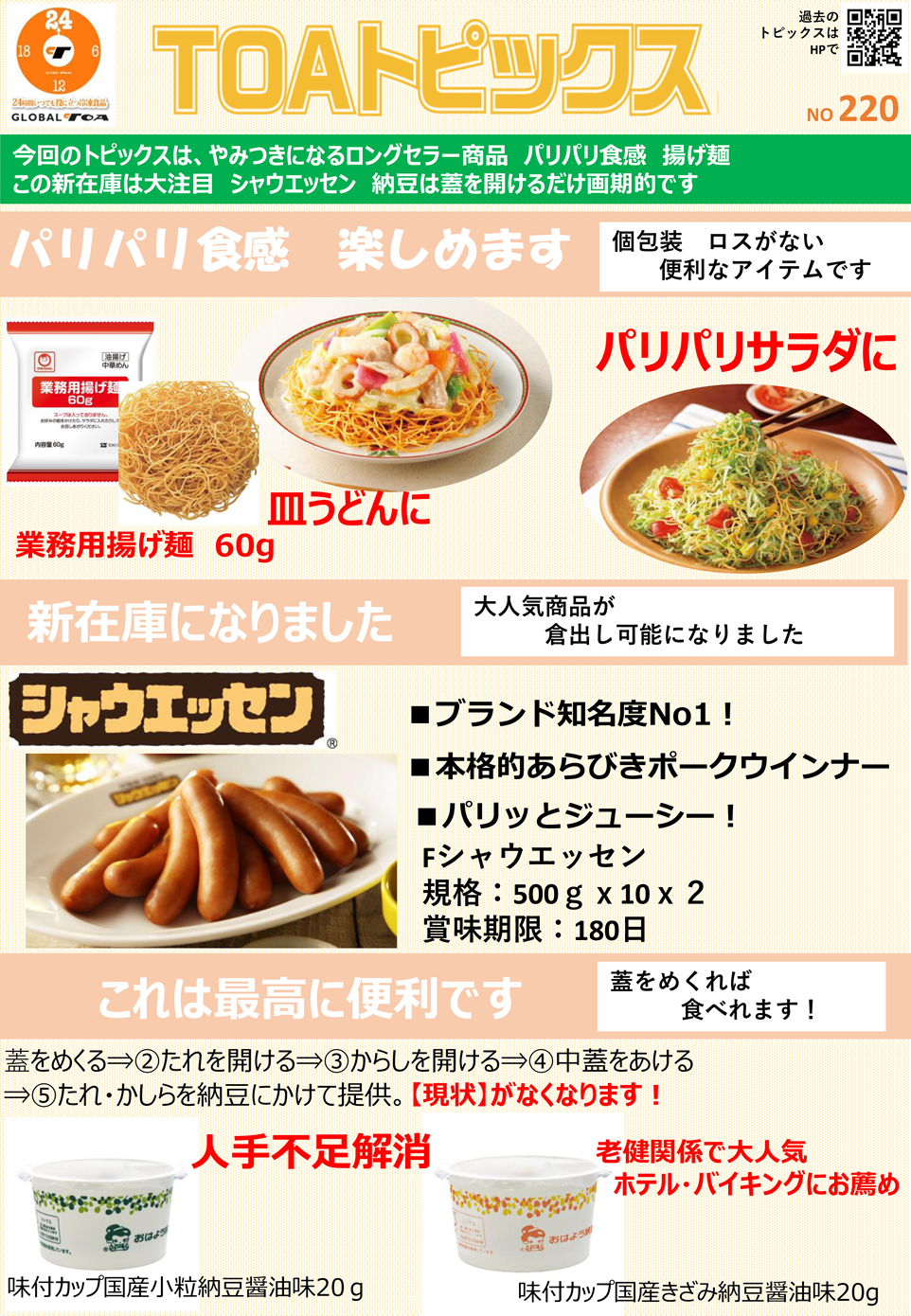 今回のトピックスは、やみつきになるロングセラー商品パリパリ食感揚げ麺